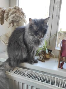 Bei kalten Temperaturen oder schlechtem Wetter gehen wir nach drinnen in die Bibliothek, die auch mein Coaching-Raum ist, da hat vielleicht auch Kater Strolchi lust, sich etwas vorlesen zu lassen.